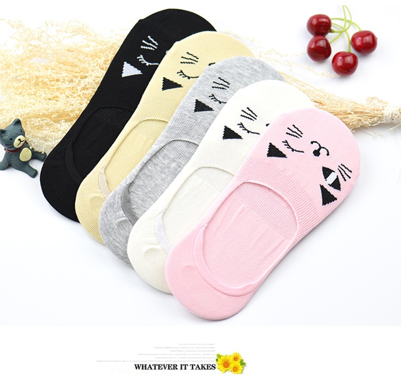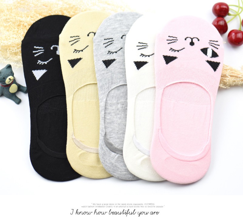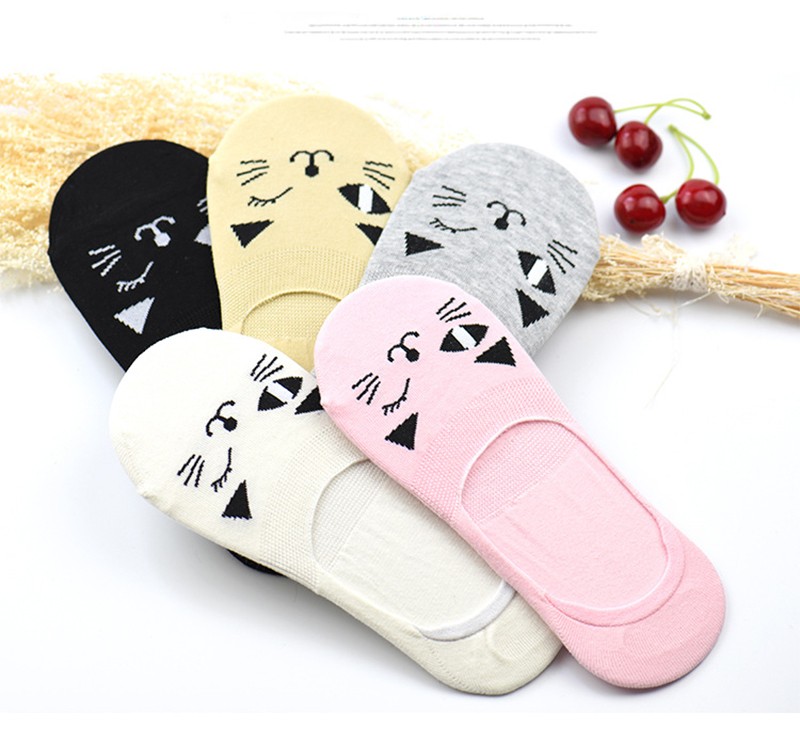 プリントされた猫の顔に癒される◎☆5足組ソックス! |