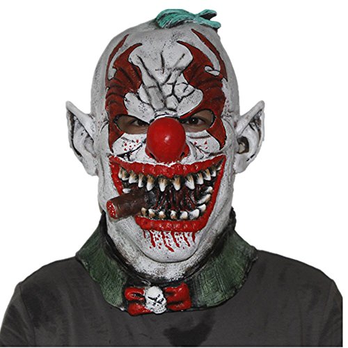 -. Feature : Terrifying facial features, Multiple eye catching features from the facial expressions. The facial sculpt terrifies, Strong Presence and facial features, fantastic visibility and comfort / Includes one Fonzo the clown mask, cigar clown mask, Perfect for any creepy clown disguise / Suitable for Masquerade Parties, Costume Parties, Carnival, Christmas, Easter, Halloween,stage performances, craft decoration / Material: High quality Latex, Environmental and non-toxic. Perfect for that demented clown look / One size fits most. this masquerade mask fits for most adult heads,both men and women