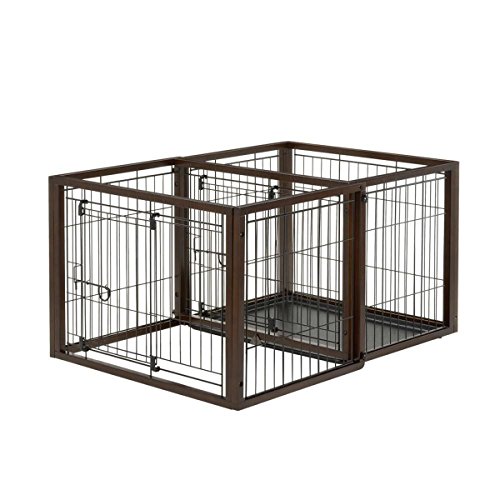 -. Feature : From a crate to a playpen; Just flip to play, For dogs up to 17.6 lbs / Door opening on small: 9.3 x 17.7"H, Medium playpen dimensions: 56.9" x 41.7" x 29.3" / Medium tray: 36.4" x 27.2" x 0.8",Pet: Dog / Material: Metal, Wool, Exact Color: Brown / Color: Brown