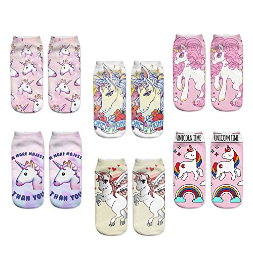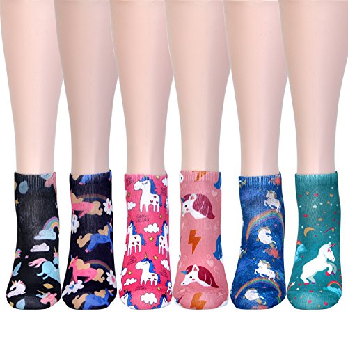 -. Title : Epeius 6 Pairs Girls'/Women's Cartoon Unicorn No Show Socks