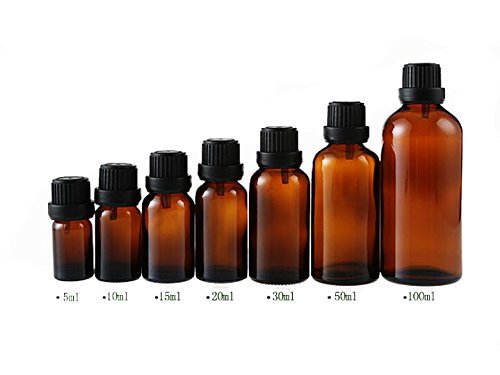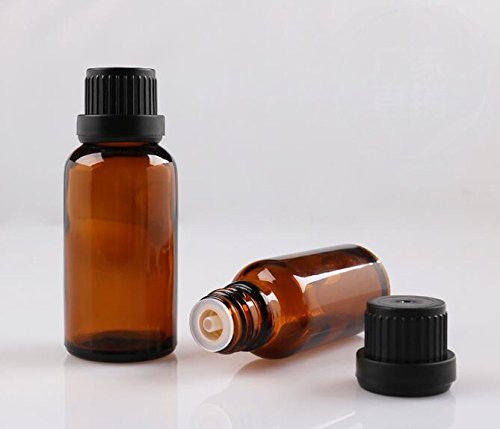 3PCS Refillable Essential Oil Amber Glass Bottles with Orifice Reducer and Black Cap-Jars Cosmetic Makeupwater Emulsion Elite Fluid Storage Containers (20ml)