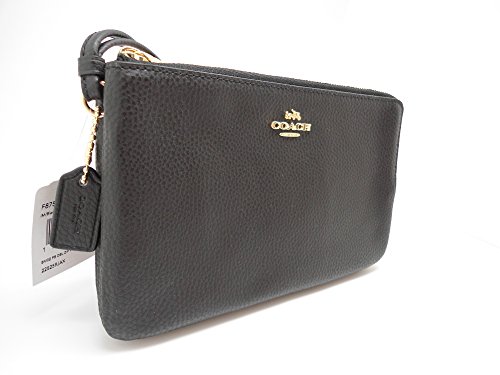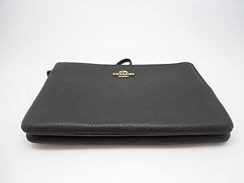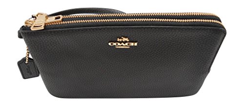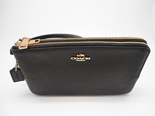 Coach F87587 Double Zip Pebble Leather Wristlet Wallet BLACK