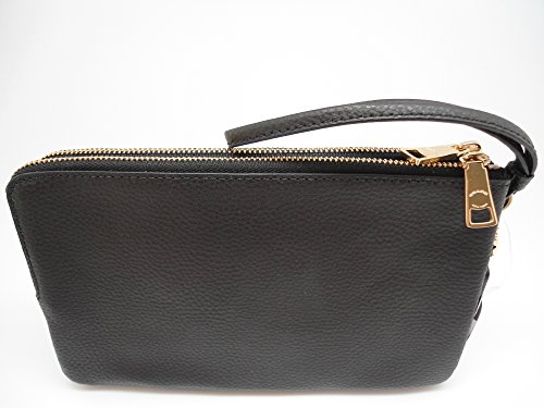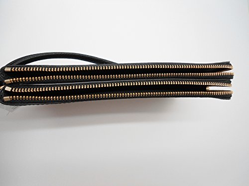 Signature Large Wristlet Black Double Zip Top Corner Closure - Gold Tone Hardware - Attached Wrist Strap
