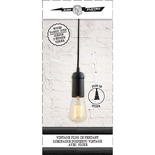Globe Electric's simple matte black Vintage Edison 1-Light Plug-In Mini Pendant with a black cord is a great spin on a classic design. The exposed socket creates a modern industrial look. Pair it with a vintage inspired bulb for a unique design. Simple and inviting this piece is great for any space in your home. Hang it alone or pair it up to create a variety of different long lasting looks. The in-line on/off rocker switch makes using this pendant a breeze. Includes swag hooks for quick and easy installation and requires one 60W E26 light bulb (sold separately). Check out Globe Electric's assortment of designer vintage inspired bulbs to complete the look.Feature
