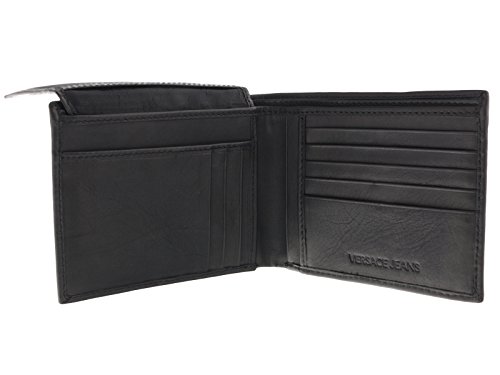 -. Feature : Composition: Leather- Dimensions:5in-3.5-0.5in / Bifold wallet with logo detail / 8 card slots; 2 note/receipt sections; 2 full-length pockets; 1 ID section / Comes in VERSACE Jeans presentation box / 100% Authenticity guaranteed or Money back