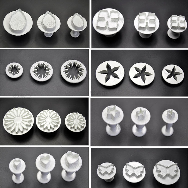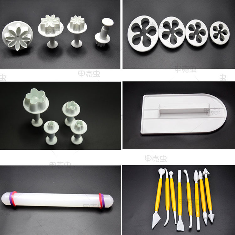 Name: 14pcs 46pcs combo cake cutterMaterial: safe food grade ABSPacking: OPP bag packagingUses: Fondant cake decoration kit baking DIY mold appliances