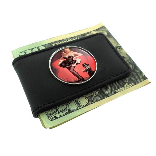 -. Title : Pin-Up Blonde Boston Terrier Black Money Clip Wallet Leather Magnet D-575
