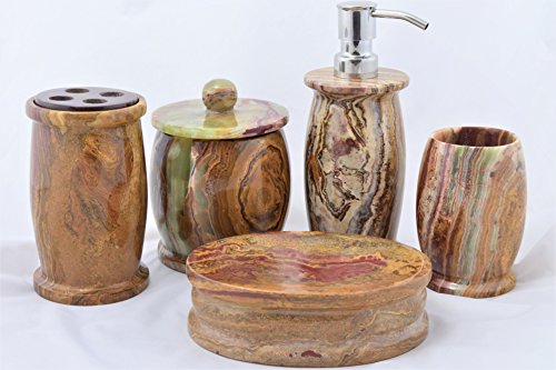 -. Brand : Nature Home Decor -. Color : Brown -. EAN : 0641061245070 -. Feature : Handcrafted and polished to perfection using exotic Multi Onyx / Nature Home Decor exclusive design / Lotion Dispenser has plastic bottle inserted inside for easy cleaning and refill / Multi Onyx is a natural stone and has a lot of color variation. Hence the actual item will have variations from the pictures shown here / Nature Home Decor is a registered brand on Amazon and we have no distributors of our products. Hence be careful and only purchase directly from Nature Home Decor -. Label : Nature Home Decor -. Manufacturer : Nature Home Decor -. Model : 700ML5 -. MPN : 700ML5 -. PackageQuantity : 5 -. PartNumber : 700ML5 -. ProductGroup : Home -. ProductTypeName : HOME_BED_AND_BATH -. Publisher : Nature Home Decor -. Studio : Nature Home Decor -. Title : Nature Home Decor 700ML5 Multi Onyx 5-Piece Bathroom Accessory Se of Pacific Collection. -. UPC : 641061245070