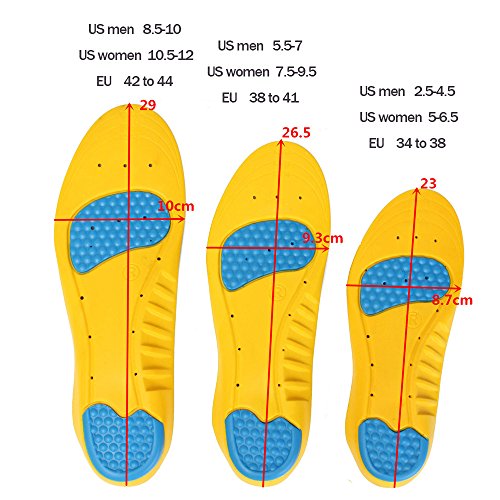 Soft Memory form, Gel in the heel and forefoot absorbs the shock of each foot strike.Full long arch support, Improve balance, Improve foot strength.Full length Arch Support. Instant relief from painful arches with this crystal clear silicone gel arch support. Additional heel cushion protects heel spur from most painful shocks.
