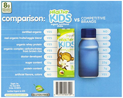 ORGAIN HEALTHY KIDS ORGANIC NUTRITIONAL SHAKE, VANILLA, 8.25 OUNCE, 12 COUNT