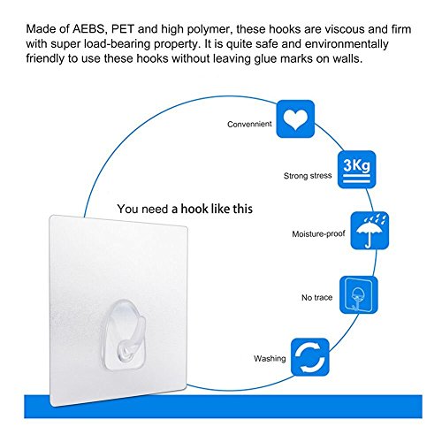 Up to 6.6 lb per hook on wall and ceiling, No nail needed.Size is 3.5x3.1 inch