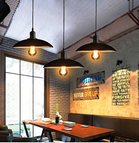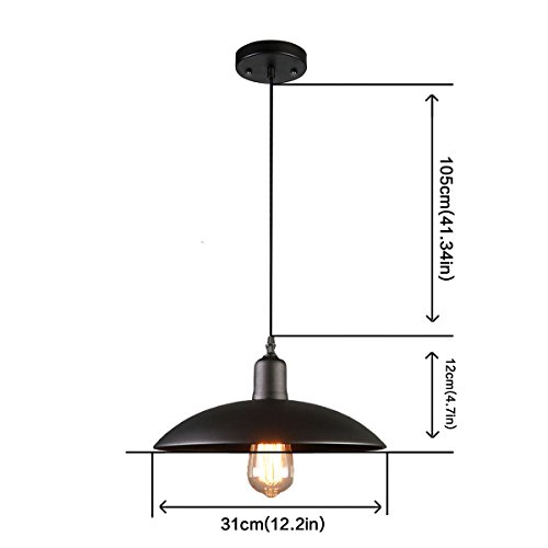 The YIHANG Iron process Pendant Light with a 41inch cord suits for every room or any office and looks clean, simple and perfect, not conflicting with any modern elements and giving you an old time feeling. Applications: • General Indoor Residence • Dining Room, Living Room, Bedroom, Kitchen • Bar, Beer house, Artist workshop Warm Tips 1. For a safe and secure installation, please ensure that the electrical box to which this fixture will be mounted is properly attached to a structural member of the building. 2. Do not connect electricity until your fixture is fully assembled. 3. we kindly suggest you contact a professional electrician directly for help, if you do not understand how to install. 4. features an E26 socket that is compatible with a variety of incandescent, LED, CFL and halogen bulbs .Please note: The E26 bulb is NOT INCLUDED . Specifications Material : Iron Color : Black Voltage :110-240Vac Wattage : Max 250 Watt Item Weight : 1.76 Lb Iron shade diamter: 12.20inch Iron shade height: 2.75 inch Cable length: 41.34 inch UL-Listed Bulb socket: E26/E27 base Canopy diameter: 4.72 inchFeature