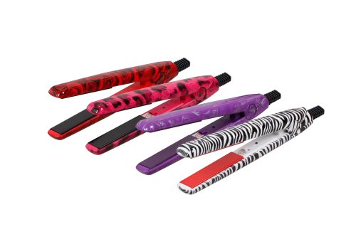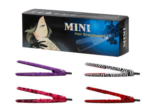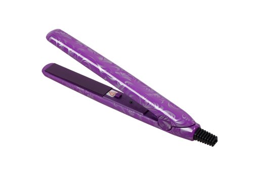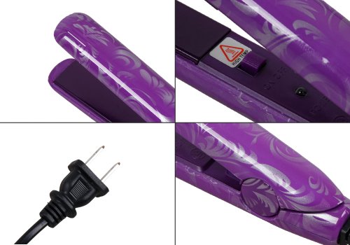 Bundle Monster Portable Mini Travel 0.5”Ceramic Tourmaline Plates Flat Iron Hair Styling Straightener US – COLOR: PURPLE LEAVES