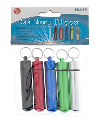 SE PH225-5 Waterproof ID Holder, Black/Red/Blue/Green/Silver, 5 Piece