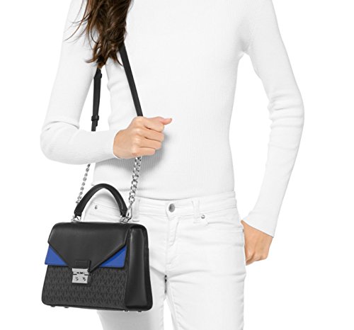 MICHAEL Michael Kors Sloan Medium Signature Leather Satchel, Black Blue
