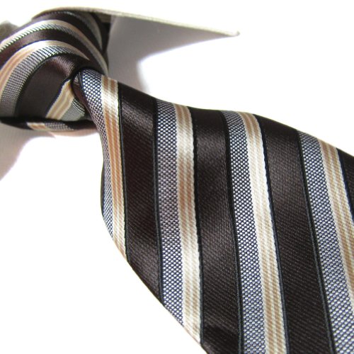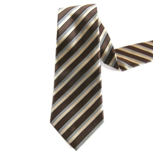 (Towergem)/Accessories/Ties/DIRECT FROM USA/Extra Long Microfibre Tie Brown/Golden Stripe Polyester XL Men's Necktie 63"