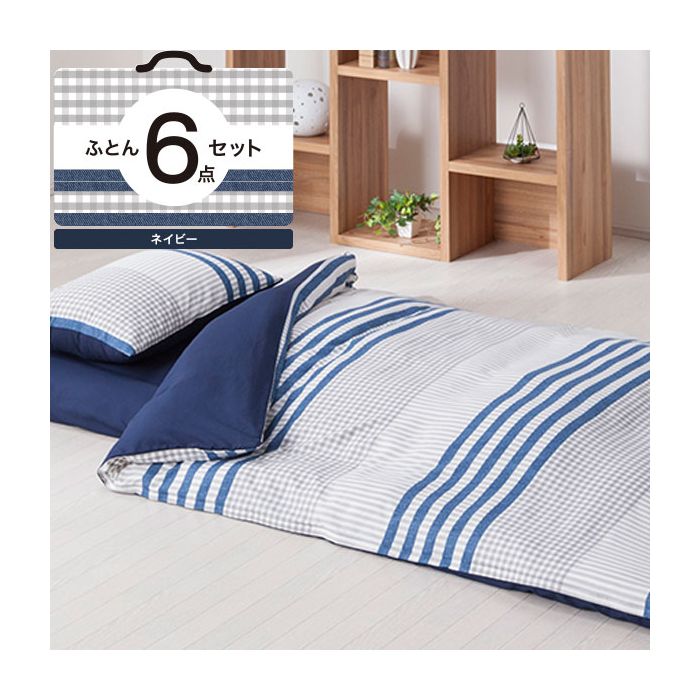 원본상품명: 6点セットすぐに使えるカバ?付きふとんセット シングル(スグニツカエル NV S) 送料有料玄?先?納品