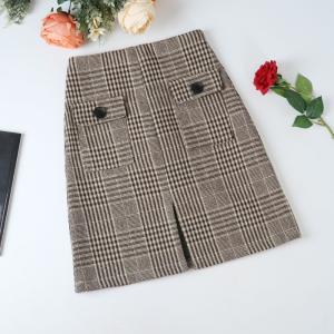 チェック柄 ミニスカート タイトスカート ハイウエスト 2017年トレンド プチプラセール 秋冬 ポケット