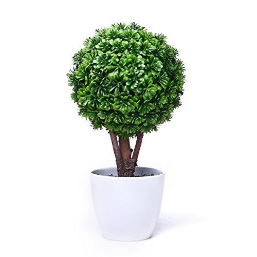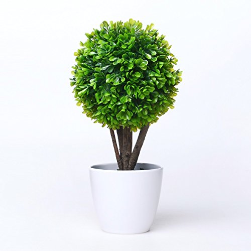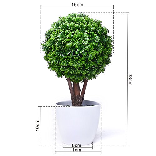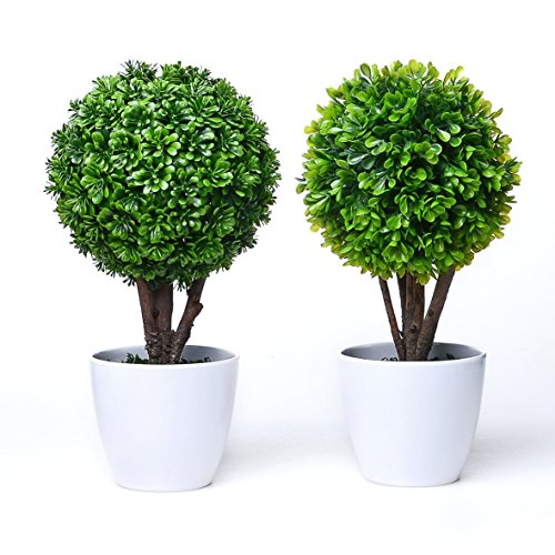 2x Round Artificial Faux Potted Home Desk Tabletop Decor Boxwood Topiary Plant in Pots