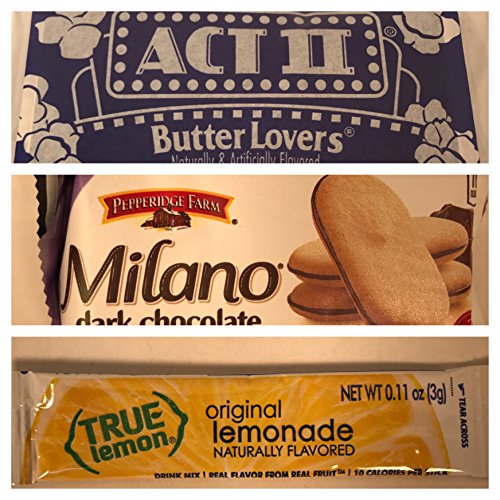 -. Feature : Be sure to check "THIS ORDER CONTAINS A GIFT" so that you can write a FREE message / Friend, Mom, Aunt, Cousin, Sister, Daughter, Grandma having a birthday soon? Send this gift box to brighten their day! / 14 Items in Each Box -- Including 1 Manicure Set, 3 P.R.Ingles (1 Original, 1 Cheddar Cheese, and 1 Sour Cream & Onion), .75 oz Milano Dark Chocolate Cookies, 1 Tape Measure Set (Assorted Colors), 1 Word Finds Book (Assorted), Cinnamon Bun OR Lemon Meringue Scented Candle in a Mini Mason Jar, and a Pretty Notebook (Assorted Colors) / Also includes: Act II Butter Lovers Microwave Popcorn, Single Pot Hazelnut Premium Coffee by Steep & Brew, 1.74 oz Peanut M&M's, 2 oz. Kars Sweet 'n Salty Mix, and a True Lemon Lemonade Packet / All packed in a glossy, sturdy gift box (no cheap basket or flimsy cellophane) with the elegant message "Birthday Bliss" on front, tied with a gold bow