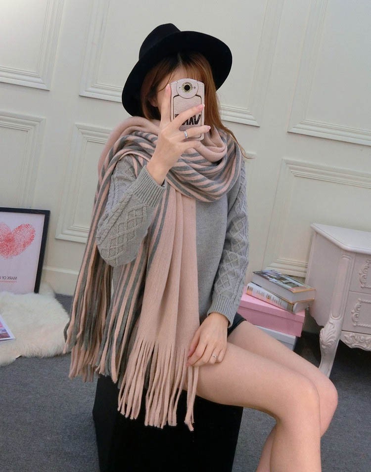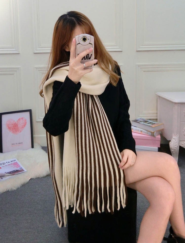 【入荷後営業日2,3日以内出荷予定 通関待ちや不良により出荷遅くなる場合はメールにてご連絡いたします。メール受信設定によっては正常に受信されない場合はございますので、 弊社からのメールを予め受信頂くようご設定くださいませ。】 ファッション小物 ストール ミックスカラー 防寒保温 厚手 ウールストール 大判ストール 220CM*50CM フェミニン 大人可愛い レディス レディース 春 新作ミックスカラーストライプ柄大判ストール◆素材:コットン80%+ウール20%