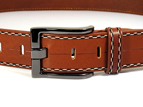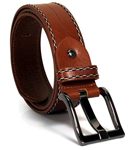 (TM4-113) Men Belt 100% Real Leather Black, Brown, White 28~42" Wide 1.5" Whole Skin (36" (Waist 34", Total 43±1"), Tan Brown)