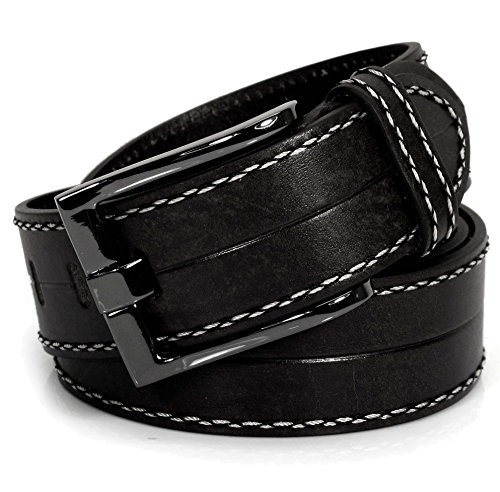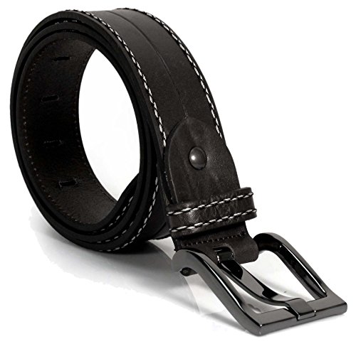 (TM4-113) Men Belt 100% Real Leather Black, Brown, White 28~42" Wide 1.5" Whole Skin (38" (Waist 36", Total 45±1"), Black)