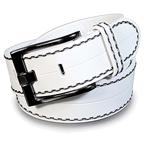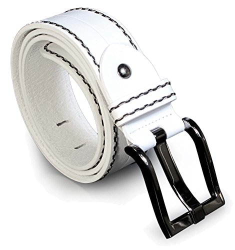(TM4-113) Men Belt 100% Real Leather Black, Brown, White 28~42" Wide 1.5" Whole Skin (32" (Waist 30", Total 39±1"), White)