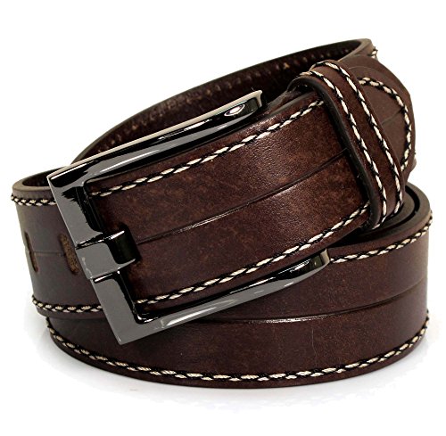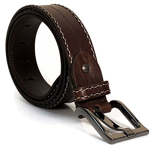 (TM4-113) Men Belt 100% Real Leather Black, Brown, White 28~42" Wide 1.5" Whole Skin (36" (Waist 34", Total 43±1"), Dark Brown)