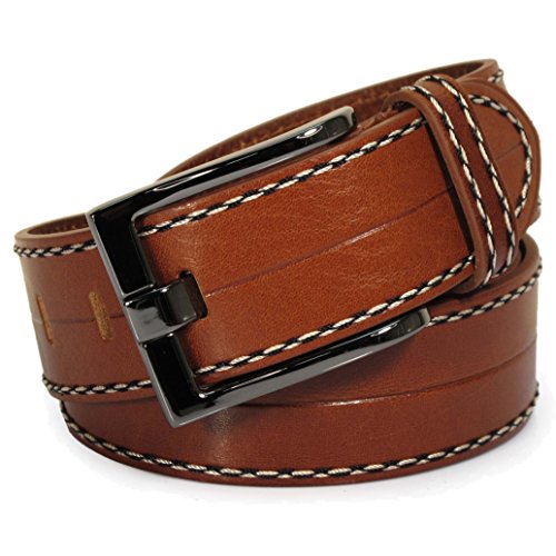 (TM4-113) Men Belt 100% Real Leather Black, Brown, White 28~42" Wide 1.5" Whole Skin (34" (Waist 32", Total 41±1"), Tan Brown)