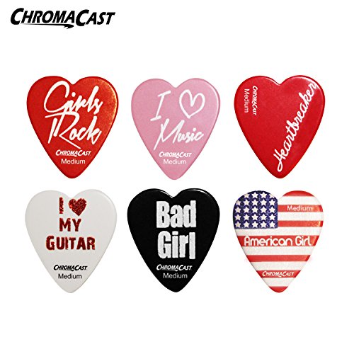 - Feature : Picks: Girls Rock, I heart Music, Heartbreaker, I heart my guitar, Bad Girl, American Girl / Stand out from the crowd with these 6 stylish heart shaped pick designs / Great gift for any female musician / Available in Light, Medium and Heavy gauges. / Medium 12 pack includes 12 medium gauge picks in 6 styles.