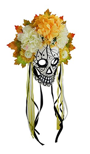 -. Brand : Zeckos -. ClothingSize : One Size -. Color : White -. Department : womens -. Feature : 12 in. High, 12 in. Long, 2.5 in. Deep / Made From Durable and Lightweight Resin / Highly Detailed Hand Painted Finish / Attached Floral Headdress / Silken Ribbon Ties and Hanger -. Label : Zeckos -. Manufacturer : Zeckos -. Model : M38039white -. MPN : M38039white -. PackageQuantity : 1 -. PartNumber : M38039white -. ProductGroup : Apparel -. ProductTypeName : ADULT_COSTUME -. Publisher : Zeckos -. Size : One Size -. Studio : Zeckos -. Title : Colorful Day of the Dead Sugar Skull Mask w/Floral Crown