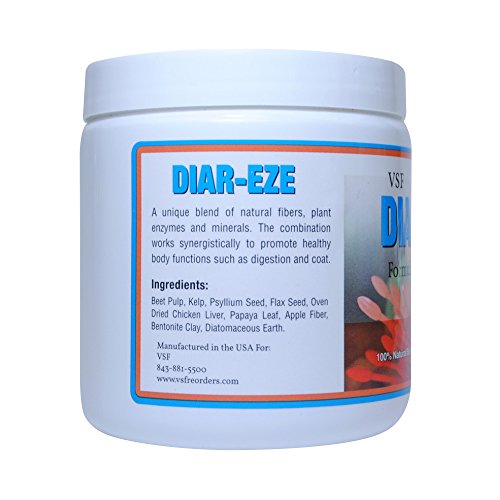 -. Binding : Misc. -. Brand : Allergic Pet -. EAN : 0794504327861 -. Feature : Veterinarian formulated and used in clinical practice for 20+ years / Natural prebiotic fiber supplement (granules) / Very palatable (chicken liver flavor) / For more chronic and severe diarrhea - use with Diar-eze homeopathic spray (See How it Works) / Contains highest quality ingredients -. Label : Allergic Pet -. Manufacturer : Allergic Pet -. PackageQuantity : 1 -. ProductGroup : Pet Products -. ProductTypeName : PET_SUPPLIES -. Publisher : Allergic Pet -. Studio : Allergic Pet -. Title : Vet Select Allergic Pet Diar-Eze All-Natural Herbal Supplement - For Discomfort of Diarrhea - 10 oz Fiber Powder -. UPC : 794504327861