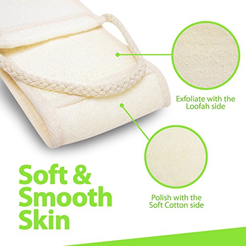 Makes your back soft and smooth - Exfoliate with the loofah side, and polish with the soft cotton side.