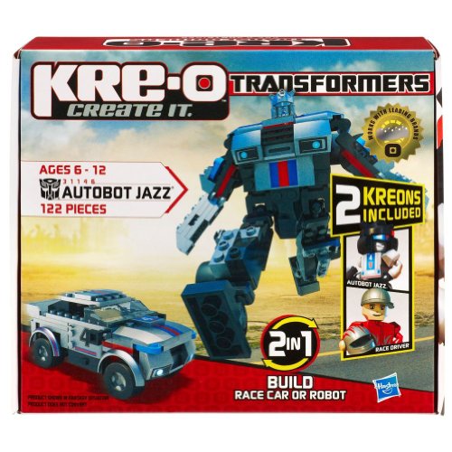 -. Binding : Toy -. Brand : KRE-O -. EAN : 0653569640547 -. Feature : Build the Autobot team's special ops commander, Autobot Jazz, in vehicle or robot mode with this 2-in-1 set of 122 KRE-O construction pieces / Includes 2 Kreon figures: Autobot Jazz and Race Driver / 2-in-1 KRE-O construction set lets you build Autobot Jazz as a robot figure or as a race car / In vehicle mode, one of your Kreon figures can ride inside the race car / Ages 6 to 12 -. Genre : strategy -. IsAdultProduct : 0 -. ItemPartNumber : HSB31146 -. Label : Kre-o -. Manufacturer : Kre-o -. Model : 31146 -. MPN : 31146 -. NumberOfItems : 1 -. PackageQuantity : 1 -. PartNumber : 31146 -. ProductGroup : Toy -. ProductTypeName : TOYS_AND_GAMES -. Publisher : Kre-o -. ReleaseDate : 2011-07-01 -. Studio : Kre-o -. Title : KRE-O Transformers Autobot Jazz construction Set (31146) -. UPC : 653569640547
