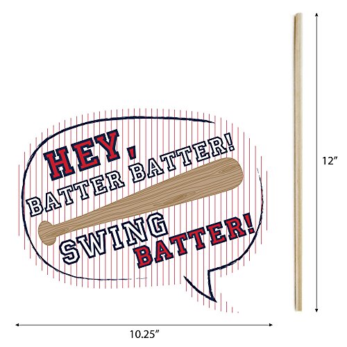 HIGH-QUALITY PARTY SUPPLIES: Batter Up - Baseball photo booth props are professionally printed on thick cardstock paper. They will arrive cut out and ready to assemble with the included wooden dowel sticks and adhesives.