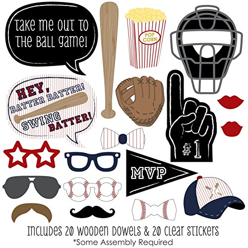 20-Piece Baby Shower or Birthday Party Photo Booth Props Kit INCLUDES 20 Batter Up - Baseball photo booth props, 20 wooden dowel sticks and adhesives for assembly. EASY ASSEMBLY: Simply attach the printed DIY photo booth props to the wooden dowels with included adhesive and reinforcing stickers.