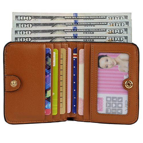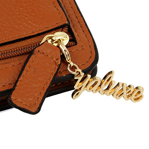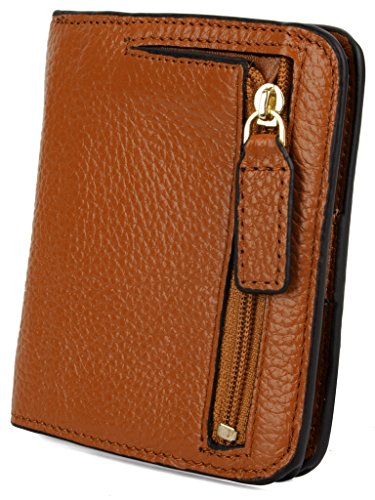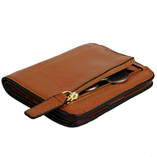 YALUXE Women's Small Compact Bi-fold Leather Pocket Wallet Brown