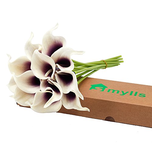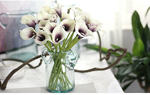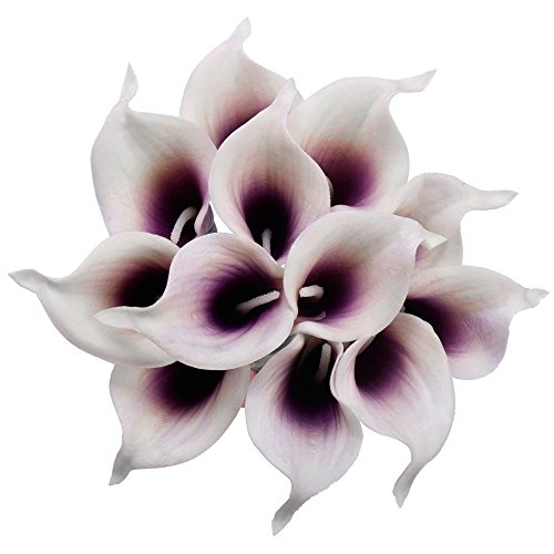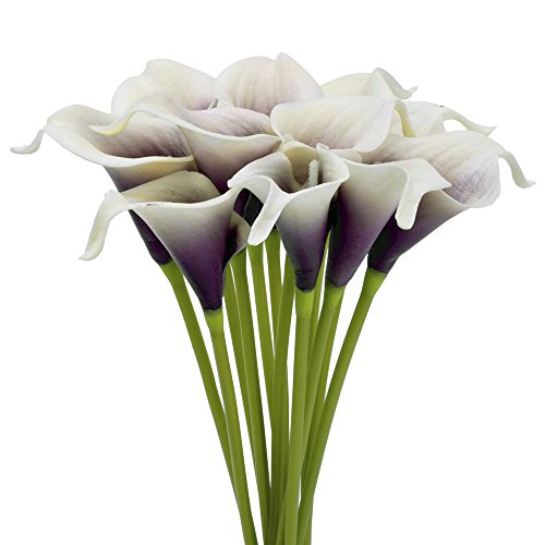 SMYLLS Calla Lily Bridal Wedding Bouquets with Latex-Look Like Real,Eco-friendly Odourless Artificial Flowers Christmas Home Decoration(12, Purple & White)