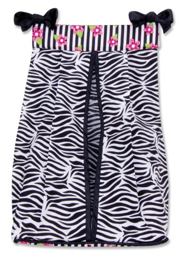 Keep your diapers organized, concealed and close at hand with the Zahara Diaper Stacker by Trend Lab. Diaper stacker body features a black and white zebra print. A black and white stripe print with paradise pink and electric lime floral accents across the top and black satin trim completes this convenient storage option. Ties allow for easy attachment to most dressers and changing tables. Measures 12" x 8" x 20 ¼" and holds up to three d ounce en diapers. This diaper stacker coordinates with the Zahara collection.