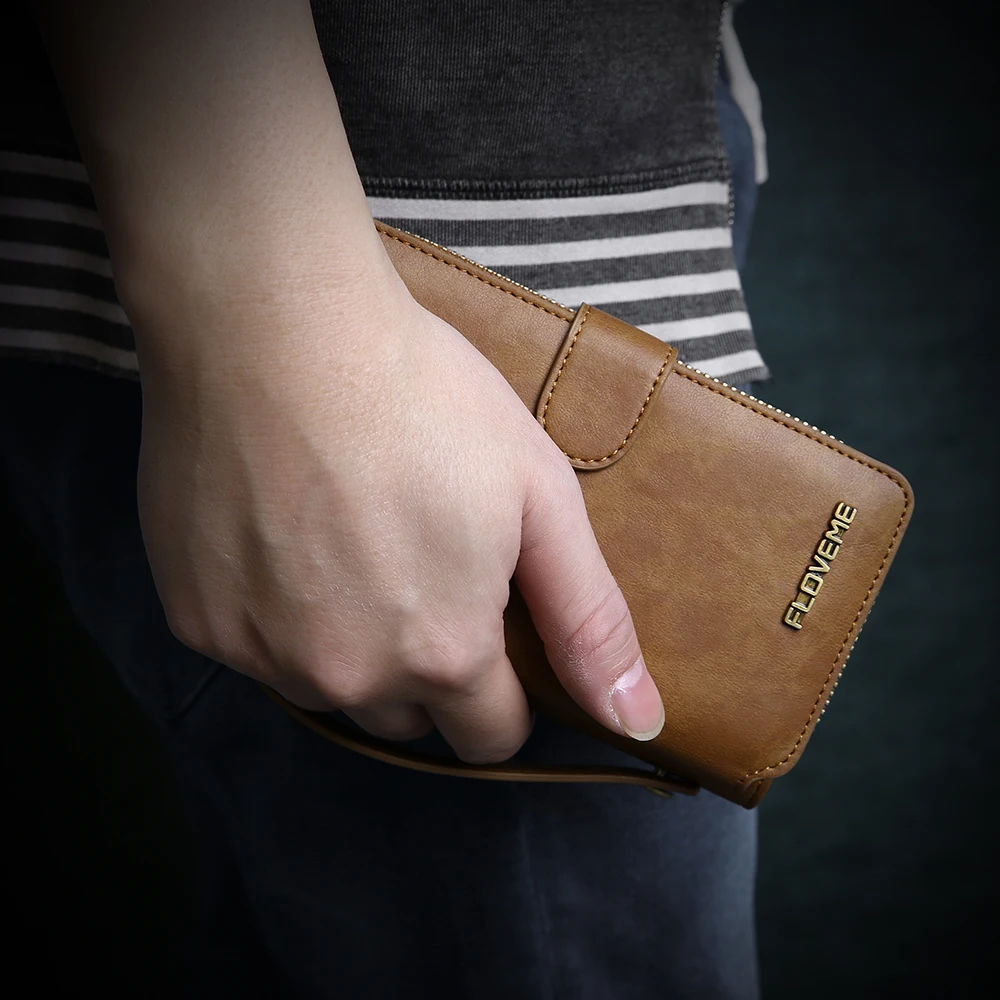Feature :Retro Business Leather Wallet Cases Bumper for Women Men