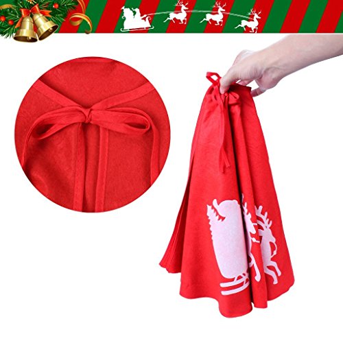 - ★Red Christmas Tree Skirts: Classic Reindeer Design Christmas tree skirt,39 inch Xmas tree skirt in red. Add more holiday atmosphere to your home, and protect the roots of the tree from damage,keep your floor or carpet clean.