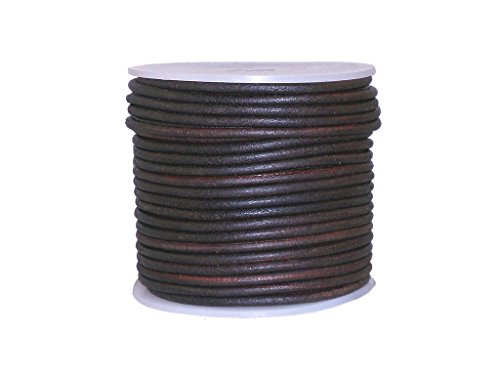 cords craft Round Leather Cord for Bracelet, Necklaces Plain Genuine Leather Cord 1.5MM Dark Brown Distress