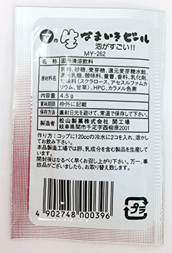 原材料:乳糖、砂糖、麦芽糖、還元麦芽糖水飴、還元乳糖、酸味料、重曹、香料、乳化剤、甘味料(スクラロース、アセスルファムカリウム、甘草)、HPC、カラメル色素