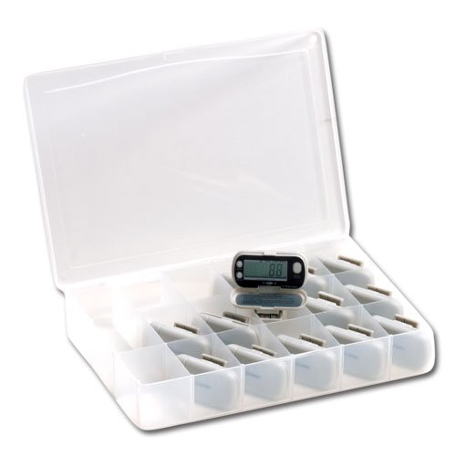 Product DescriptionThis is a handy clear plastic storage case for all your pedometers. It allows you to keep them all accounted for and holds up to 32 pedometers.0