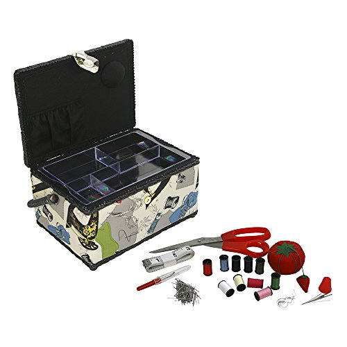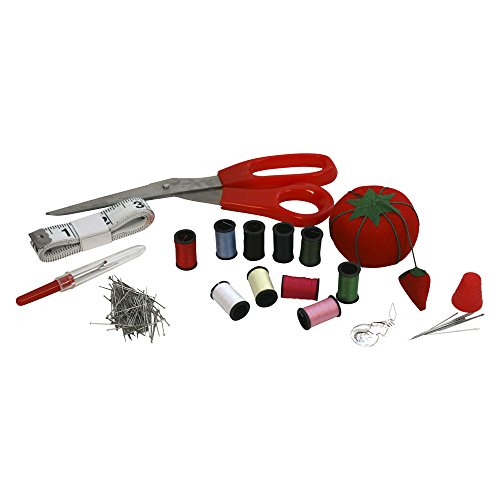 -. Feature : 8" sewing scissors, 10 asst hand ndles, 100 dressmaker pins, 10 mini spools of thread, needle threader, pin cushion, seam ripper, 60" measure & thimble / Each basket includes a removable plastic tray to help keep items organized along with plenty of storage for sewing supplies. And thimbles / Carrying handle and plenty of space below the plastic tray for storing patterns, scraps, tools, etc. / Easy to find sewing help website: www.sewingideas.com