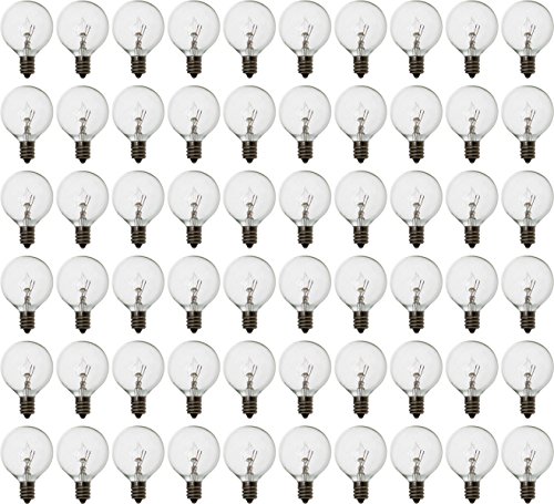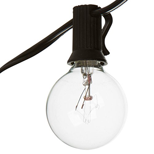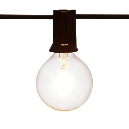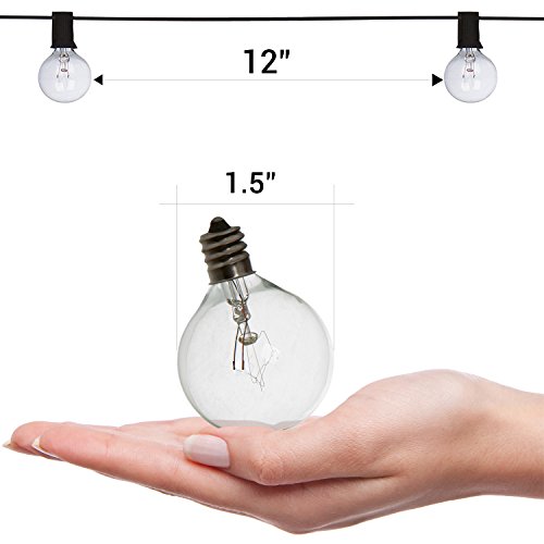 - LONG PERGOLA LIGHTS FOR MORE FUN: Our globe string lights are 50ft long and will satisfy even the most demanding decorative and construction needs. The black wire has 50 clear G40 bulbs, which are end to end connectable for your convenience. The 12" spacing between bulbs permits a more luminous effect! Connect multiple strands and have more fun!
