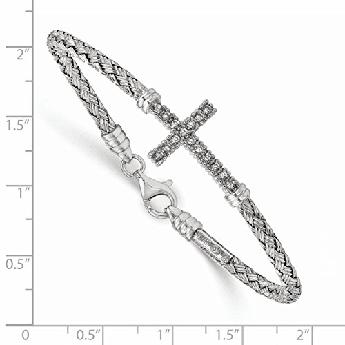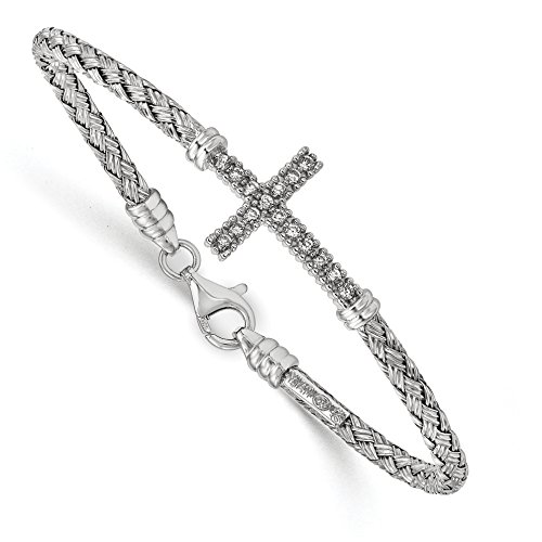 ICECARATS DESIGNER JEWELRY 925 STERLING SILVER CUBIC ZIRCONIA CZ ITALIAN CROSS RELIGIOUS BANGLE BRACELET CUFF EXPANDABLE STACKABLE FOR WOMEN