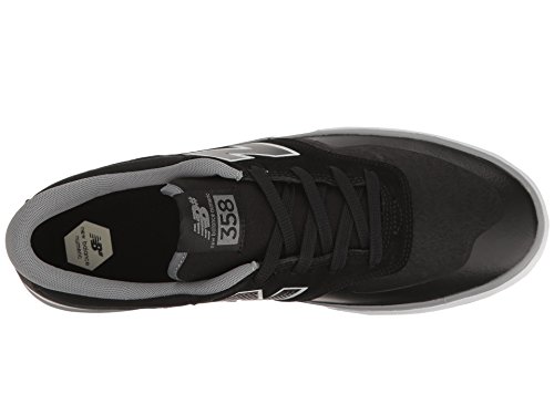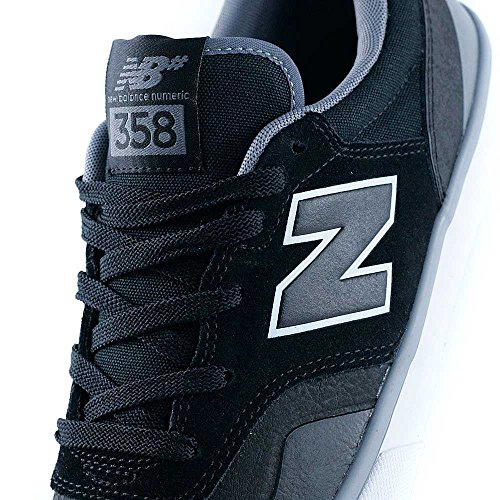 Studio : New Balance Publisher : New Balance Binding : Apparel Product Description Pro Skateboarder Arto Saari?s demands of a shoe culminate in the New Balance Numeric 358. A clean, asymmetric design with subtle details to enhance breathability, grip and board control, the 358 skate shoe sits on a modified version of our reliable vulcanized soles for superior board feel. The 358 features a polyurethane insert for additional support and cushioning, and is constructed from premium suede. 0