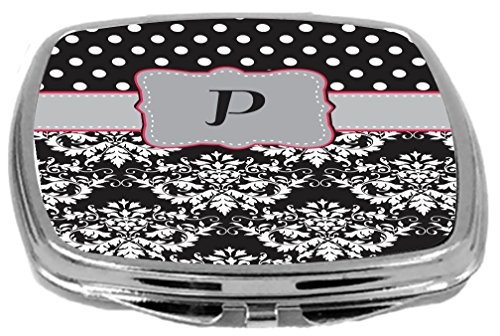 Rikki Knight Initial P Damask Dots Design Compact Mirror, Grey/Pink/Black, 17 Ounce